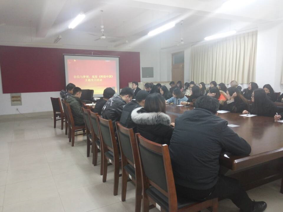 11月30日晚,艺术学院党总支副书记、副院长乔磊在文经楼资料室带领学生党支部共同观看由中共中央宣传部、中央电视台联合制作的电视纪录片《辉煌中国》,学生党支部的全体成员、党员发展对象和入党积极分子参加。