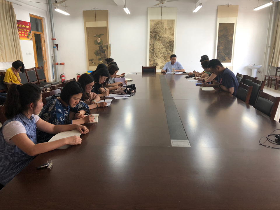 6月7日,艺术学院在文经楼资料室举行理论中心组学习扩大会议,学习《关于加强和改进进新形势下高校院(系)党组织建设的意见(试行)》,会议由党总支书记梁永平主持,理论中心组全体成员和部分教职工参加。