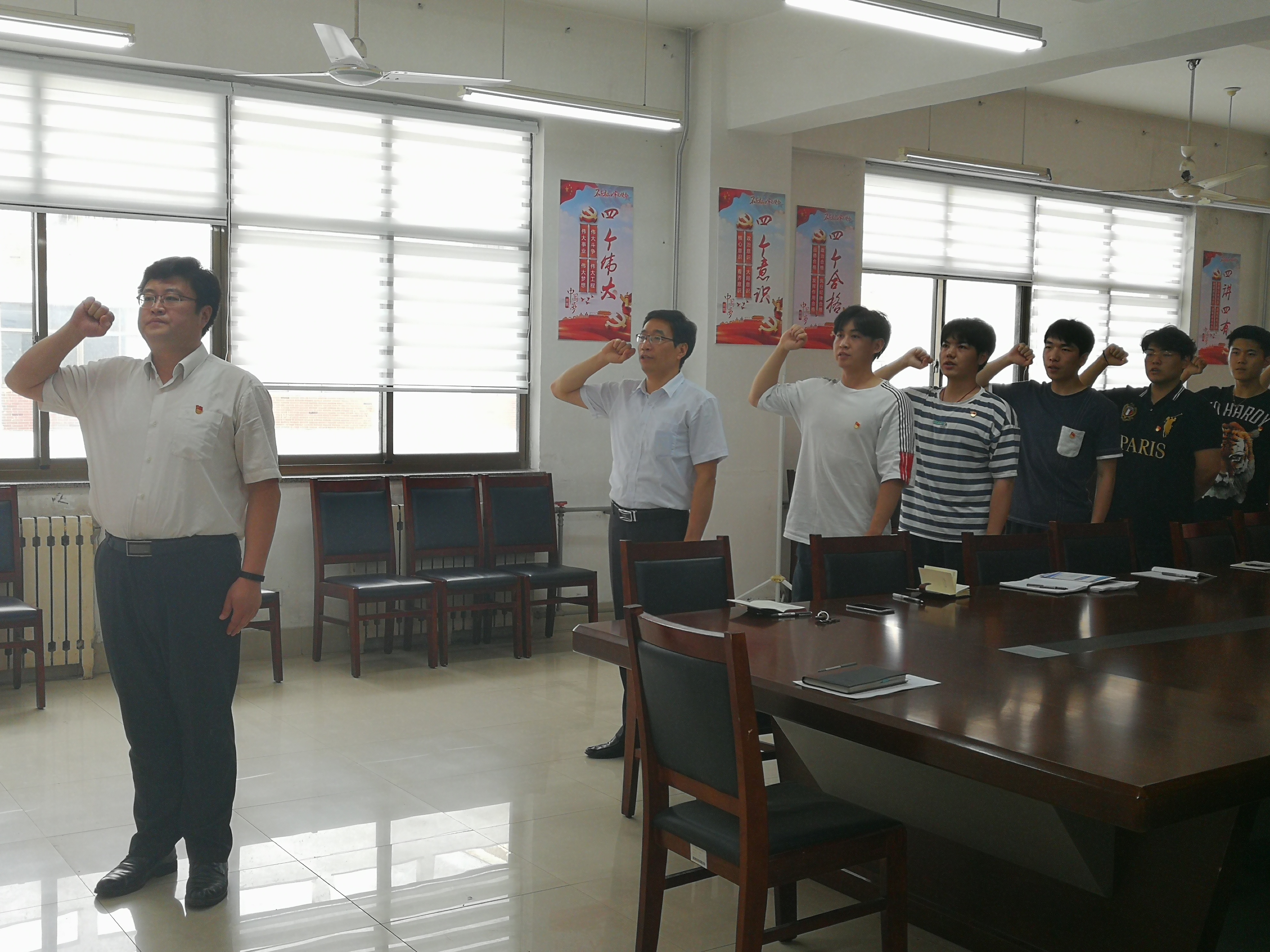 7月1日,青岛农业大学艺术学院第三(学生)党支部举行入党宣誓仪式,艺术学院党总支副书记副院长乔磊、团委书记李振玻、正科级辅导员候鉴璇以及艺术学院全体学生党员参与了本次活动。全体预备党员以及老党员同志面向党旗,庄严起誓。