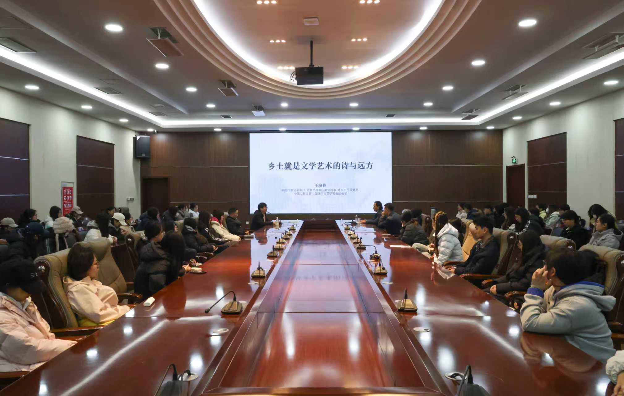 讲座现场氛围庄重而热烈,毛晓春以深入浅出的语言,从中华传统文化溯源,结合自身创作经历与艺术实践案例,深刻阐释乡土文化对文学艺术的滋养。“每一寸田野、每一缕炊烟,都是创作的灵感源泉;每一份农耕智慧、每一种乡土情怀,都是艺术的精神内核。”他强调,文学艺术的生命力根植于土地,乡土的烟火气、农耕文明的厚重感,既是创作的灵感宝库,也是艺术家精神的归宿。