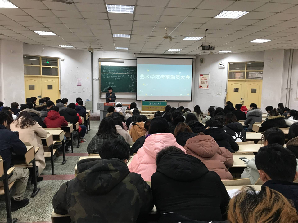 为严肃考风考纪,让同学们做到诚信考试,12月29日上午,艺术学院在教学区D202教室举行了考前动员大会。大会由团委书记王海燕主持,17级全体同学参加。