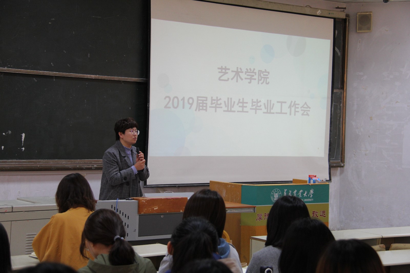 4月16日,艺术学院在教学区举行2019届毕业生毕业工作会。学院院长助理赵紫平、团委书记王海燕、辅导员侯鉴璇出席,全体2019届毕业生参加了会议。大会由团委书记王海燕主持。
