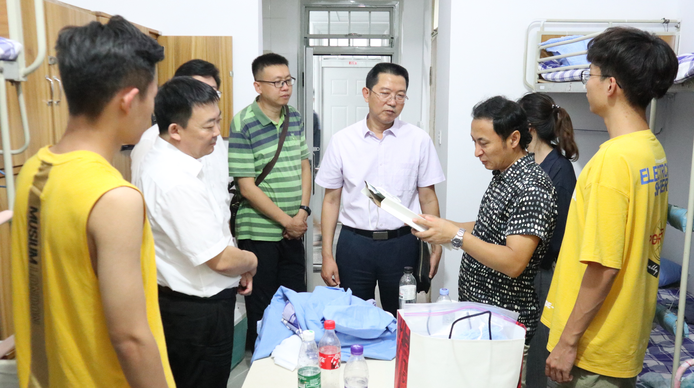 校、院领导及新生班主任走进新生宿舍,与学生们亲切交流,了解学生的家乡、是否适应大学生活等。慕乾伟部长针对大学的意义、安全问题、学习问题对学生们提出了几点希望。告诫同学们要珍惜时光,努力学习;同时要注意安全,包括人身安全、财物安全、网络安全等,防止上当受骗。最后,梁永平书记对新生也提出了几点希望和要求,希望新同学能够尽早适应大学生活、培养家国情怀、严守学校纪律、成为又红又专的新时代青年。