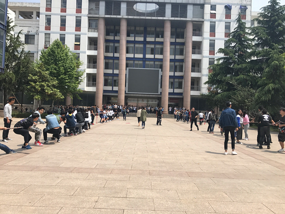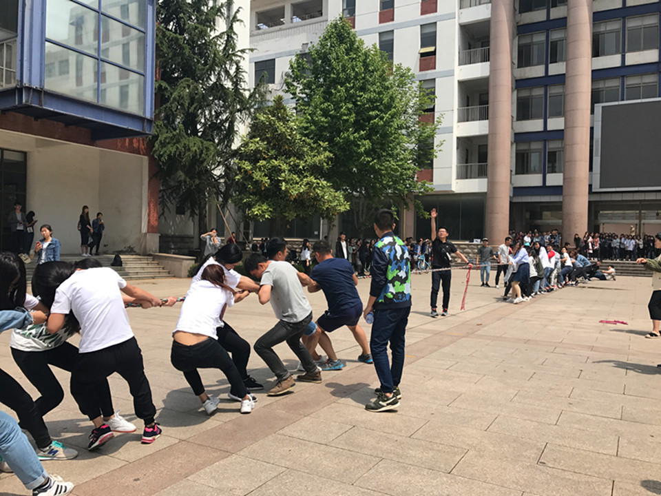 为庆祝“五四运动”98周年、增强学生的凝聚力,弘扬五四精神,丰富校园文化生活,5月5日,由艺术学院体育部举办的拔河比赛在文经楼前举行,学院15级、16级全体同学参加了本次比赛。