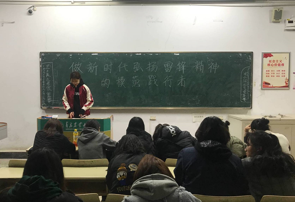 3月11日,为弘扬雷锋精神,引导广大学生做新时代弘扬雷锋精神的模范践行者,艺术学院在教学区C区开展关于学雷锋精神的主题团课,17级全体学生参加。