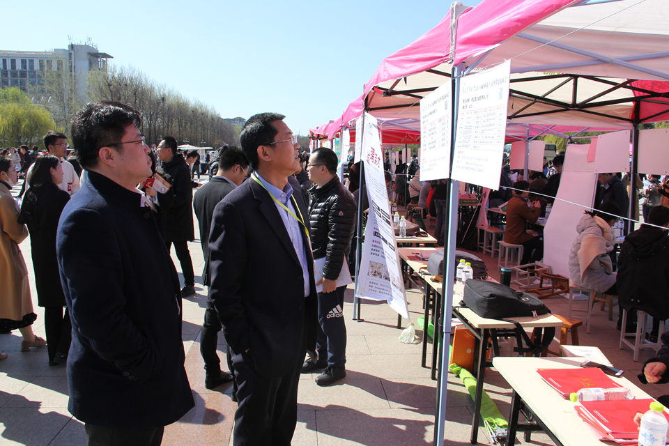 3月30日,青岛农业大学2019届毕业生春季大型供需见面会在虹子广场举行,艺术学院党政领导走访招聘会现场,向前来提供就业岗位的企业单位了解招聘情况。