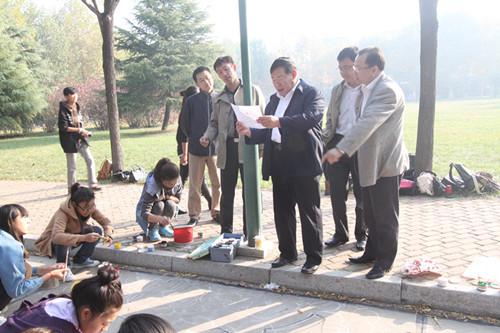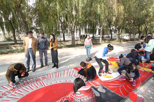 10月26日上午,艺术学院主办的以“践行党的群众路线”为主题的大地彩绘活动在教学楼东侧毓秀路举行。校党委书记程玉海、校党委副书记张铭锦、党委宣传部部长李明国、招生就业处处长董玉河等学校领导参观了此次活动,艺术学院党政领导李在洪、宋磊、由源清参加并主持了此次活动。