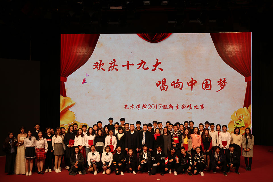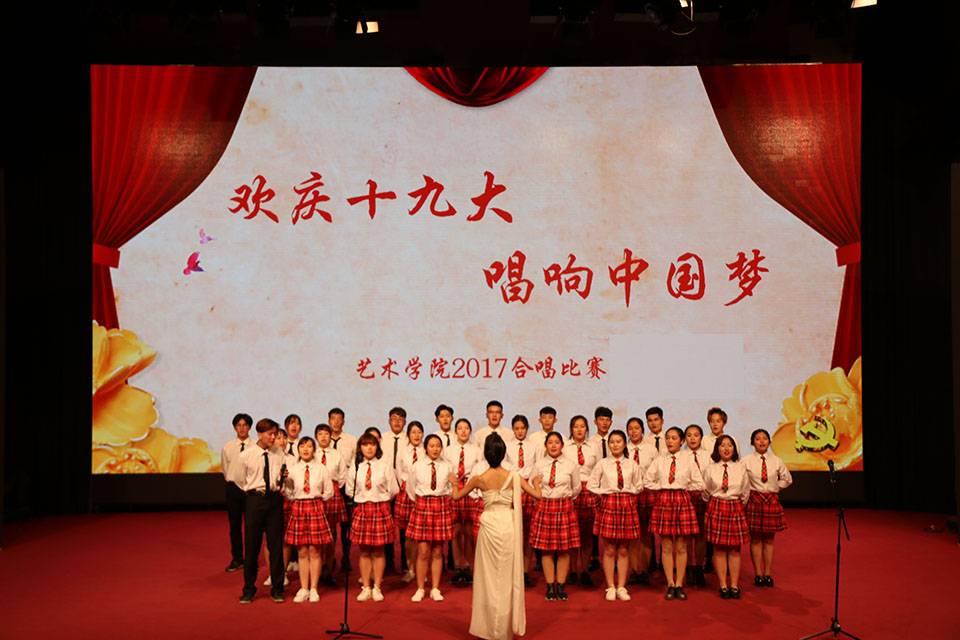 11月12日晚,艺术学院院在文经楼三楼演播大厅举行以“欢庆十九大,唱响中国梦”为主题的合唱比赛。2016、2017级全体同学以饱满的精神面貌积极参加了比赛。