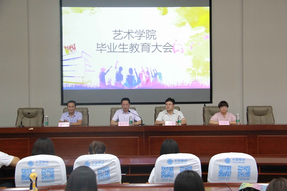 6月25日,艺术学院在学术会馆召开艺术学院毕业生教育大会,艺术学院党总支书记梁永平,副书记、副院长乔磊,副院长李慧斌,团委书记王海燕出席会议,2018届全体毕业生参加。