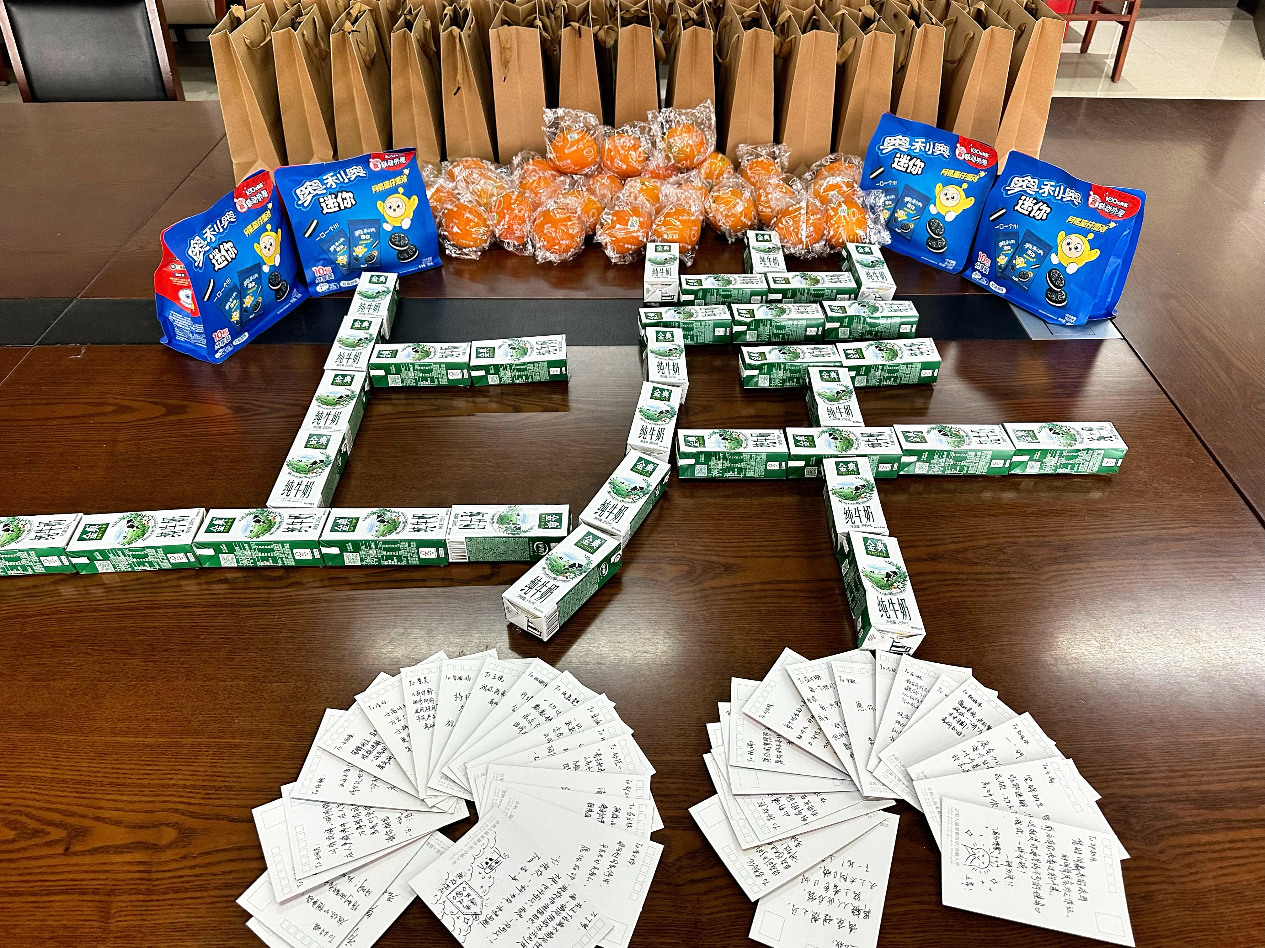 李慧斌代表学院慰问备考学生,结合艺术学科特色和冲刺阶段特点分享备考策略与心态调整方法,勉励大家坚定信念、沉着应考,将长期积累的实力转化为笔下的从容。此外,学院为同学们准备了暖心礼物,2023级学生在礼物袋上亲笔书写“前程似锦”、“未来可期”等暖心祝福语并到场给学长学姐送上祝福,师生共同分享寓意美好的蛋糕,现场气氛温馨。