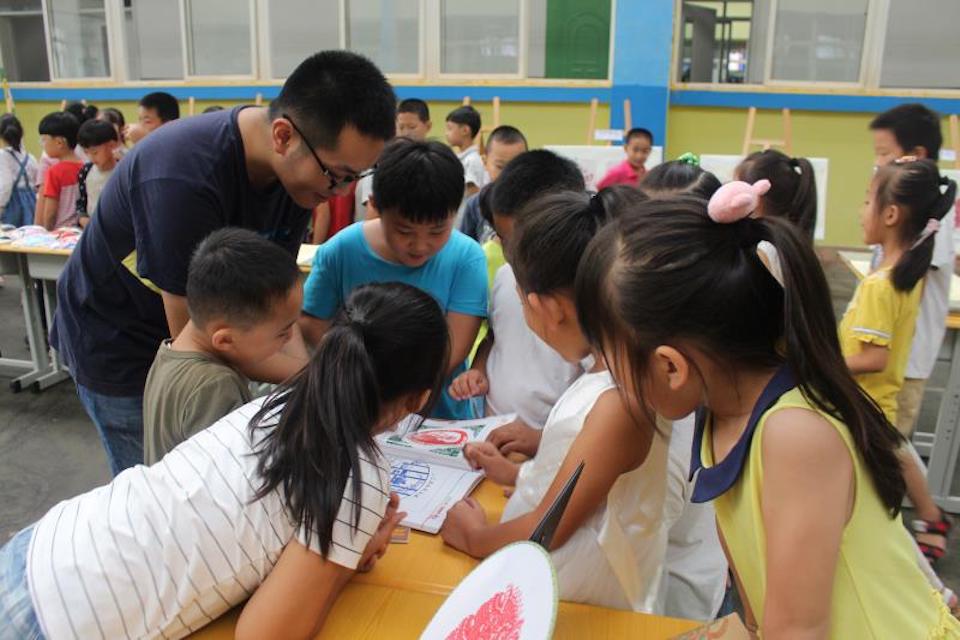 期间,青岛农业大学艺术学院党总支副书记、副院长乔磊与艺术学院团委书记王海燕、辅导员老师侯鉴璇一同来到展区,与海天实验学校校长宋宗兆、副校长孙芳芹、主任张洁交流活动进展状况,宋校长表示,大学生是连接社会与学校的纽带人群,是祖国未来的希望与未来的栋梁,肩负着传承这些非物质文化遗产,振兴中华的重任。此次作品展利用实践所带来的成果与社团活动的作品,来丰富孩子们的生活,增长孩子们的见识,并将青岛农业大学艺术学院的风采展现给社会。乔磊书记表示,前往小学等地展览,为孩子们带来欢乐,拉近孩子们与非物质文化遗产距离的同时,更为艺术学院的学生提供了一个实习、锻炼的机会,让学生们学会与人沟通,与人交流,更快得融入社会。