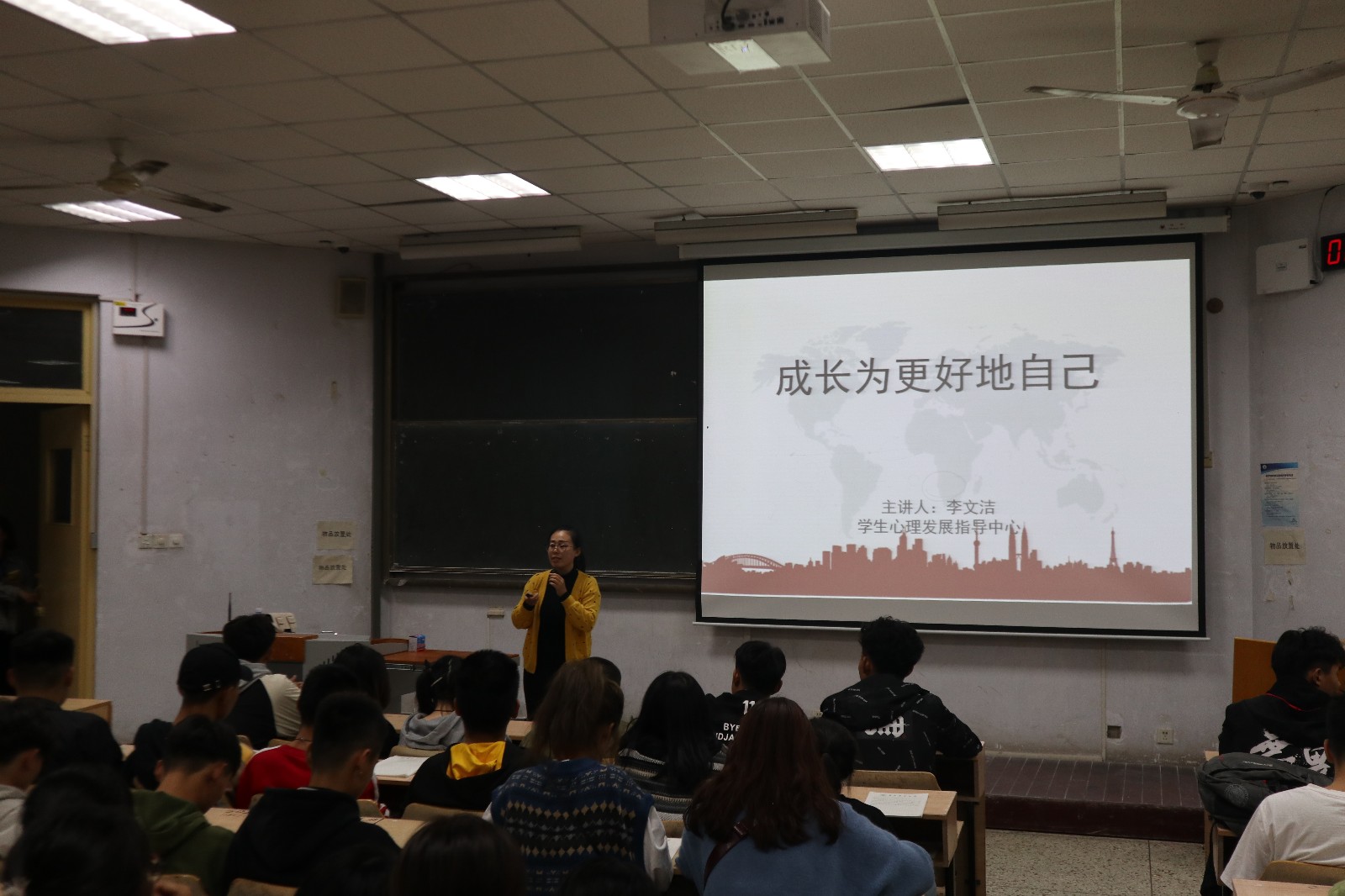 10月22日,青岛农业大学艺术学院于教学区举行“成为更好的自己”的新生心理适应性讲座,学工部学生心理发展指导中心李文洁老师受邀主讲,2019级全体新生参加。