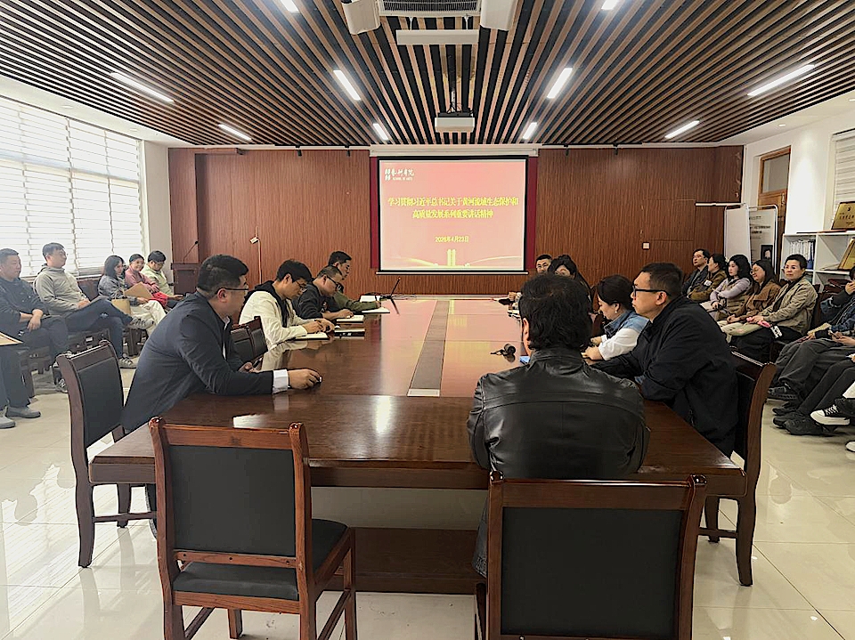4月23日下午,艺术学院在文经楼C313会议室召开全体教职工理论学习会,专题学习贯彻习近平总书记关于黄河流域生态保护和高质量发展系列重要讲话精神。学院领导班子及全体教职工参加会议。