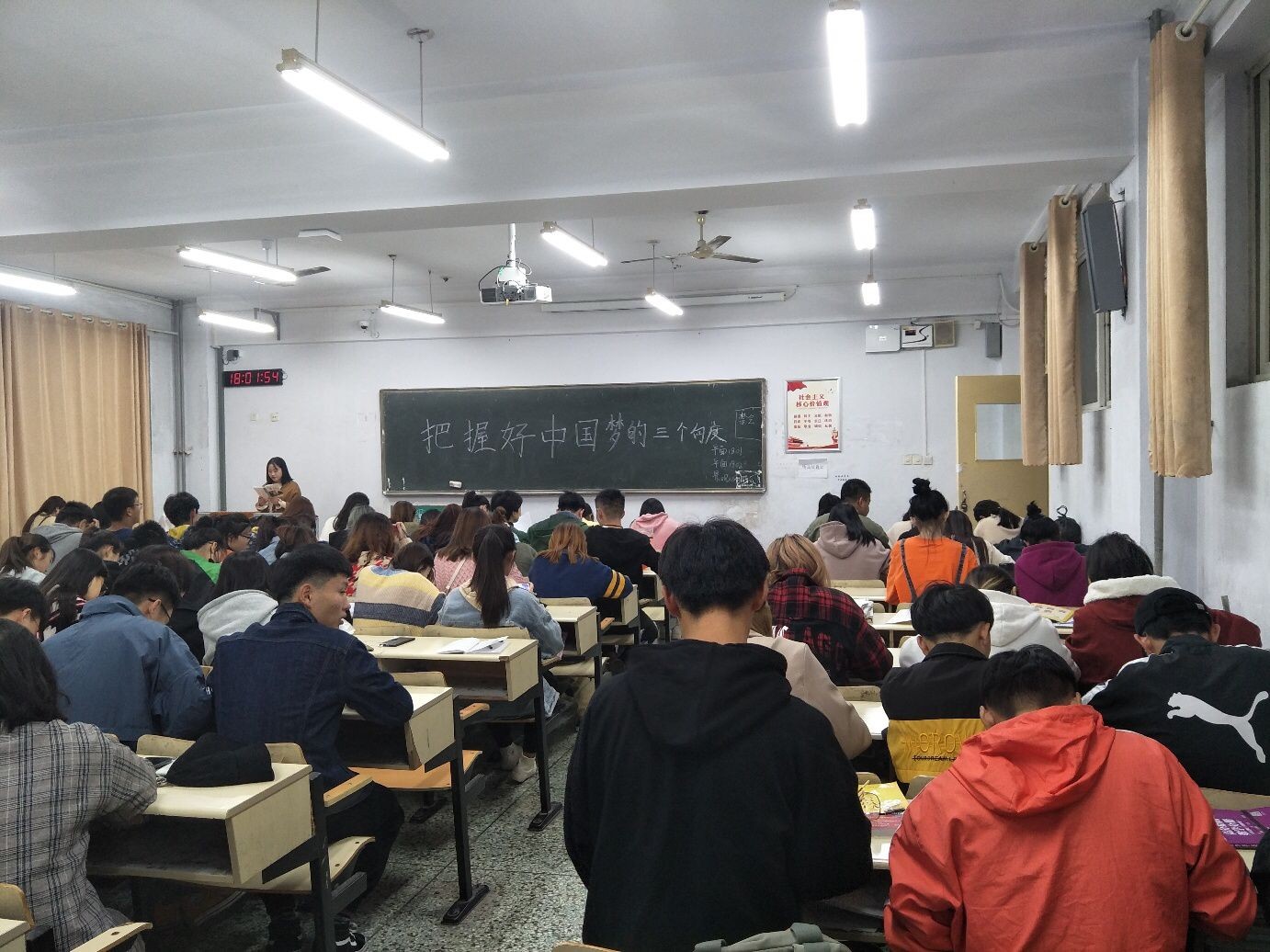 本次政治学习由各班团支书组织材料带领全体学生认真学习并深入了解中国梦的本质,现场气氛热烈,同学们热情积极,认真讨论交流,受益颇多,使我们更加清晰的认识到中国梦在时间、空间、实践三个向度上丰富的内涵与特质。