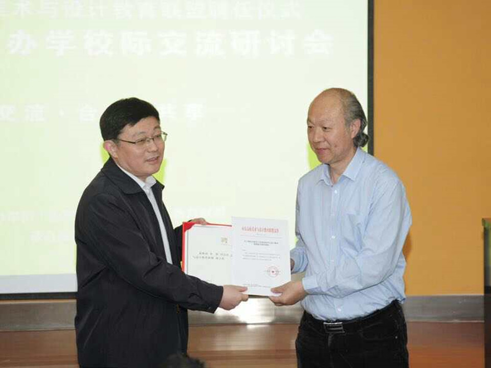 4月28日,山东省高校美术与设计教育联盟成立大会暨应用型人才培养学术研讨会在济南山东英才学院举行,来自全省三十多所高校的美术学院院长、系主任参加了会议。山东省委宣传部、山东省教育厅的领导出席会议并讲话,山东省教育厅体艺卫主管领导孙乐为为联盟主席、副主席颁发了聘书,我校艺术学院宋磊教授受聘山东省高校美术与设计教育联盟副主席。