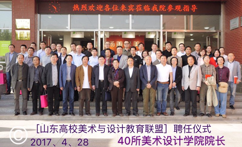 山东省美术与设计教育联盟由青岛大学美术学院、齐鲁工业大学艺术学院、山东建筑大学艺术学院、山东工艺美术学院、青岛农业大学艺术学院、青岛理工大学艺术学院、济南大学美术学院、山东财经大学艺术学院、曲阜师范大学美术学院、济南大学泉城学院艺术学院、青岛科技大学动漫传媒学院、青岛科技大学艺术学院、山东大学艺术学院、山东大学(威海)艺术学院、山东艺术学院传媒学院、山东科技大学艺术与设计学院、山东青年政治学院艺术学院、山东女子学院艺术学院、山东管理学院艺术学院、泰山学院美术学院、德州学院美术学院、临沂大学美术学院、潍坊学院美术学院、枣庄学院美术学院和山东交通学院、菏泽学院、滨州学院、济宁学院等高校的美术学院发起组成,意在通过联盟加强山东省高校美术设计学科专业的相互交流,促进山东美术设计教育事业的发展。本次会议研讨的主题是山东省应用型人才的培养,参会的学者专家分别就高等美术设计人才培养的现状及改进措施进行了研讨,并定于2017年11月在山东蓬莱举办第一次年会。