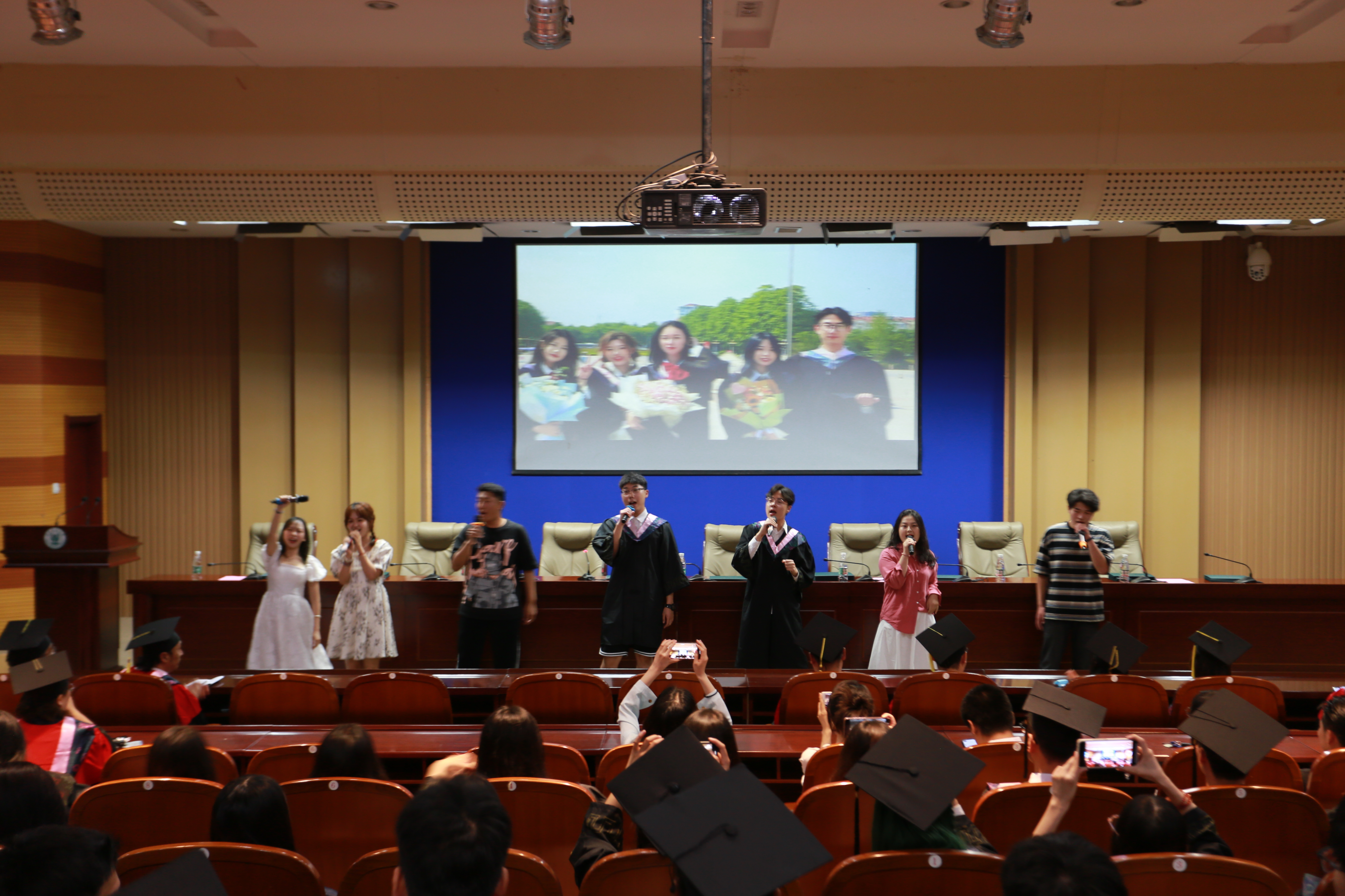 仪式上,全体师生共同观看了学校毕业专题视频《筑梦·启航》和学院师生精心拍摄的祝福视频。《凤凰花开的路口》《那年·年少》《岁月神偷》《青春纪念册》……同学们以歌曲串烧的方式,为毕业生送上诚挚祝福。