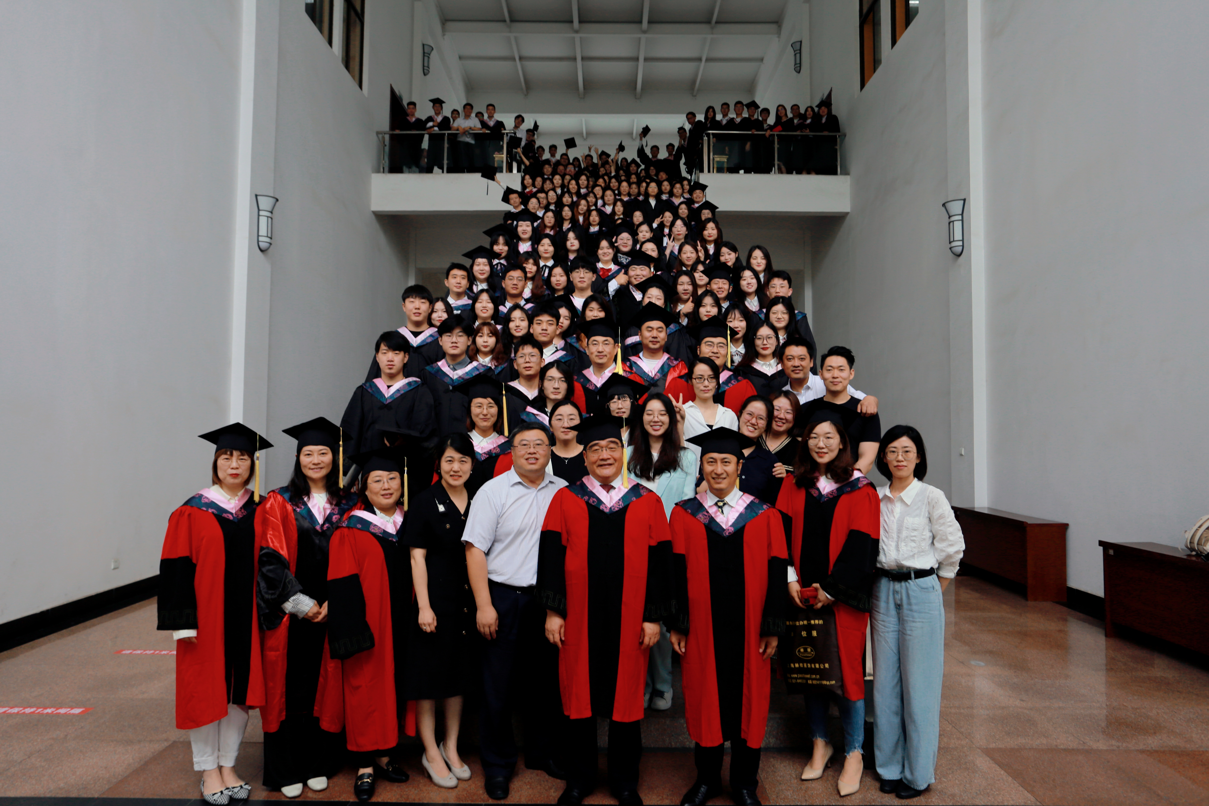 在学位授予环节,单连岱、学院学术委员会部分委员和导师代表为同学们行拨穗礼、颁发学位证,并合影留念。