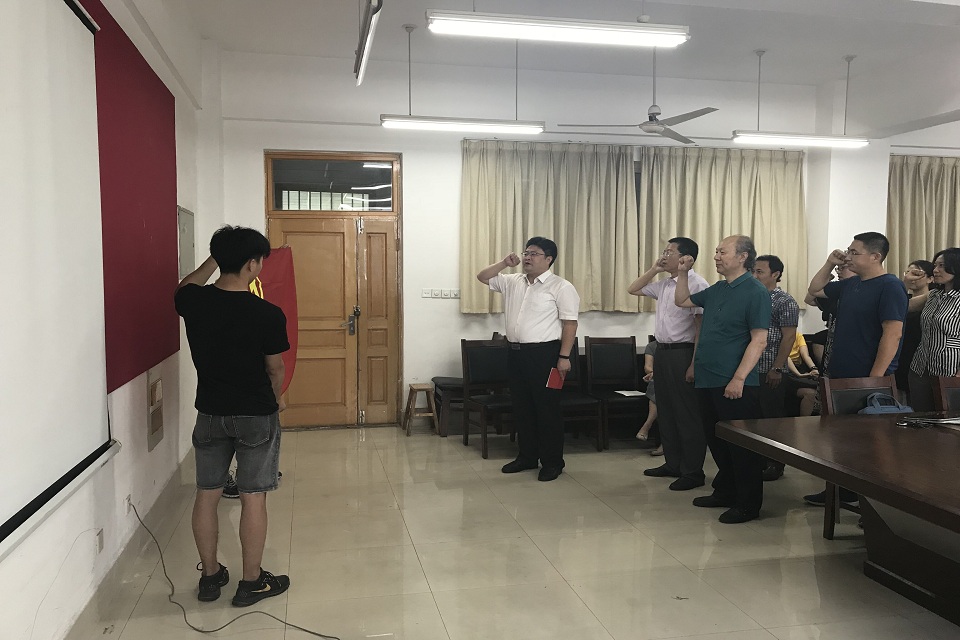 铭记党的历史,回顾党的征程。6月28日,为庆祝中国共产党建党97周年,艺术学院在学院会议室举行迎七一党员宣誓活动。学院领导班子出席,全体教师党员参加了此次仪式。