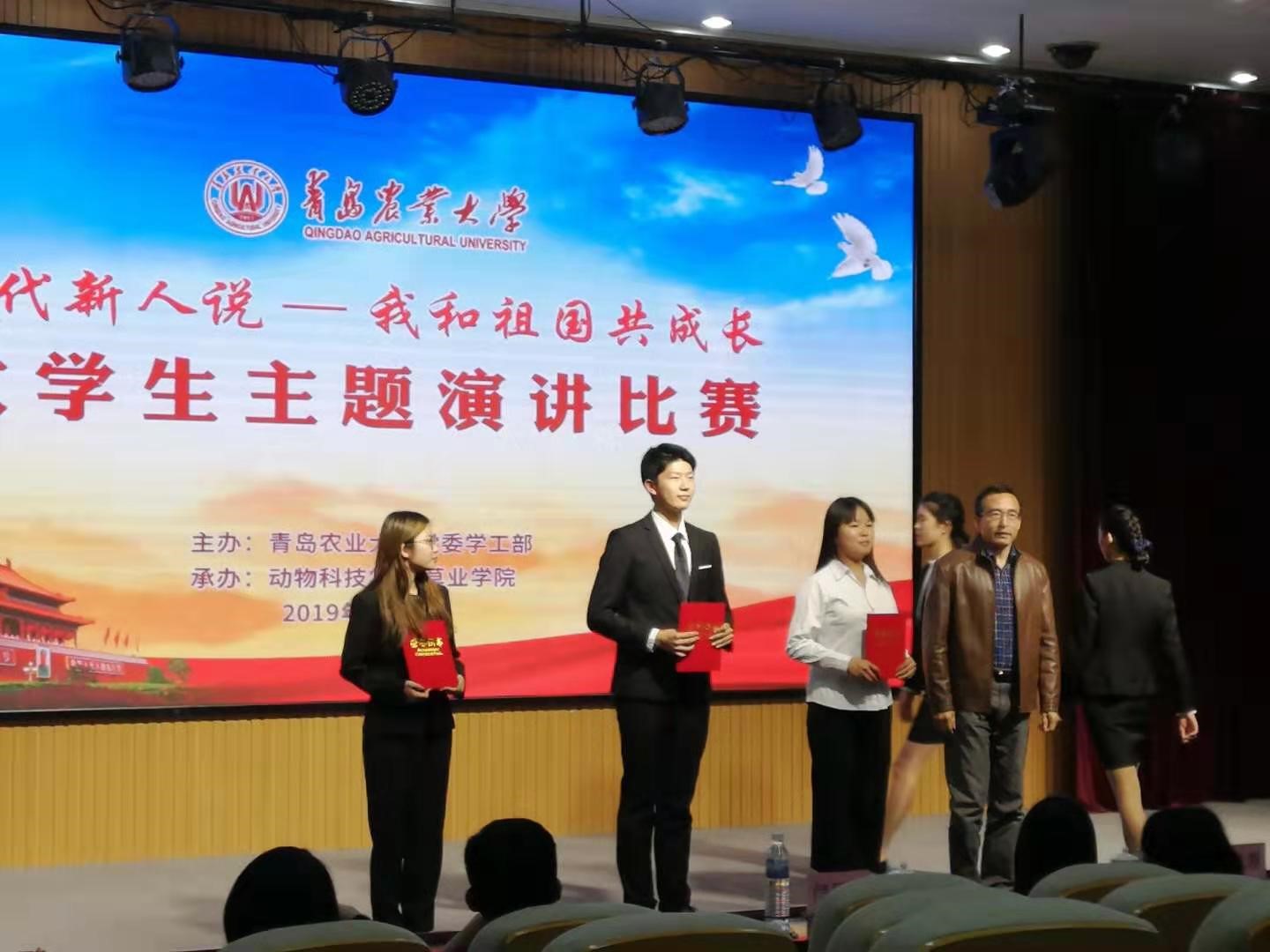 11月5日,由青岛农业大学学工部主办,动物科技学院(草业学院)承办的“时代新人说——我和祖国共成长”大学生主题演讲比赛决赛在学术会馆第二报告厅举行。艺术学院产品设计(3+4)1901班刘恩全同学获得了二等奖的佳绩。