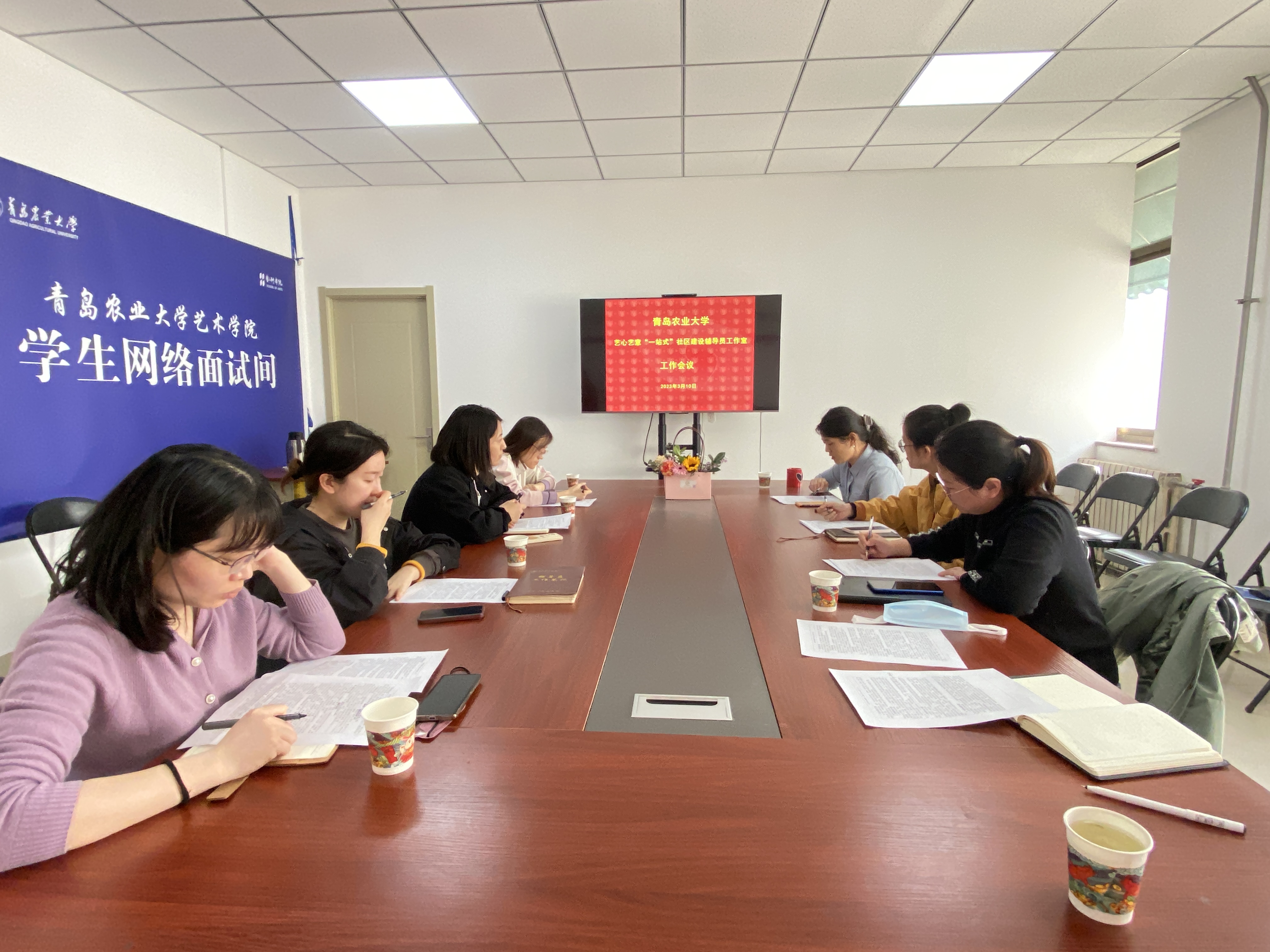 3月10日下午,青岛农业大学艺心艺意“一站式”学生社区建设辅导员工作室在文经楼C314召开新学期工作会议。会议由工作室主持人、艺术学院党委副书记副院长周维维主持,全体骨干成员参加。