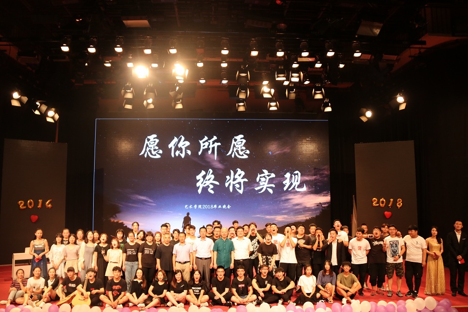 6月25日晚,艺术学院在文经楼演播大厅举办“愿你所愿,终能实现”2018届毕业生晚会。学院党政领导及2018届毕业班级学生来到晚会现场。