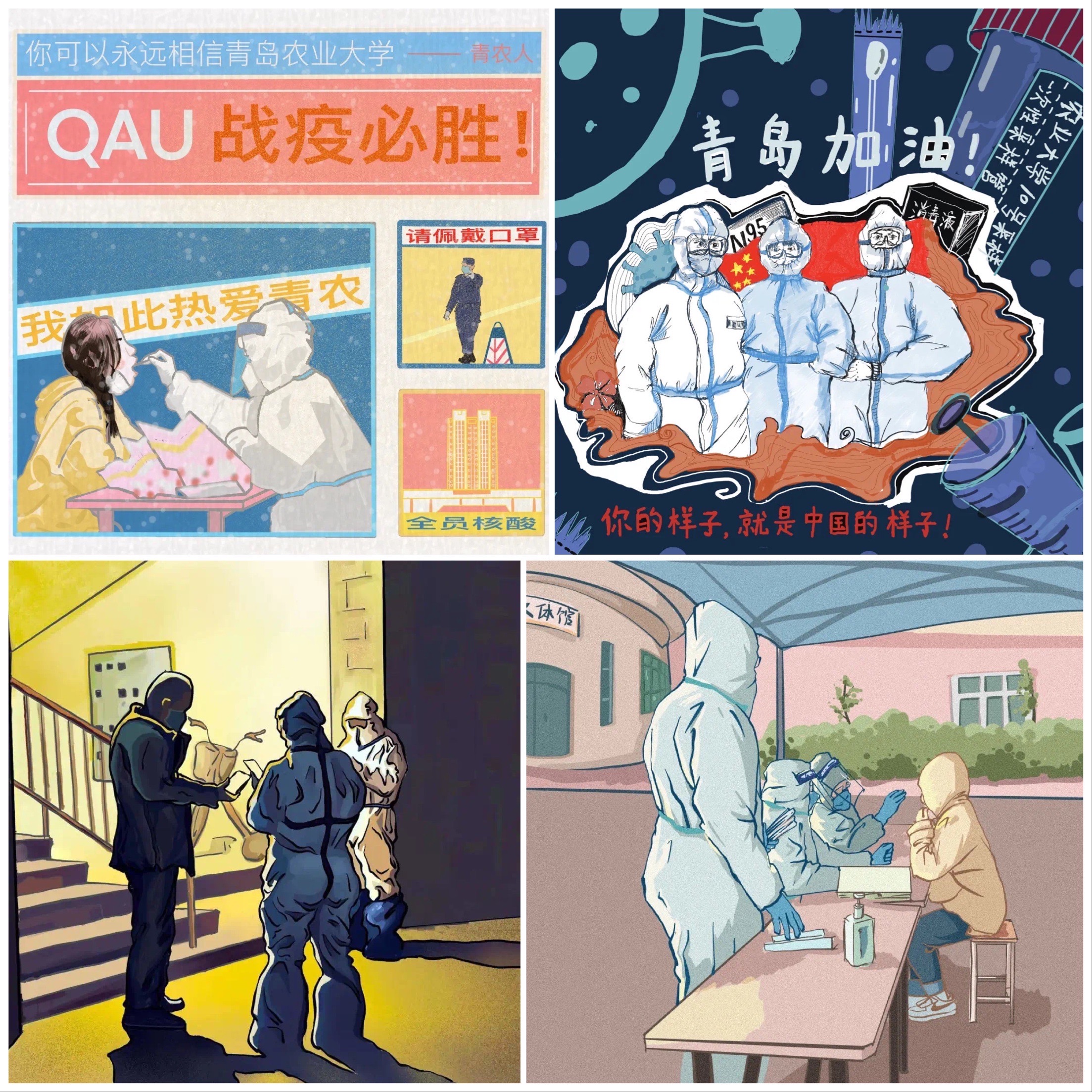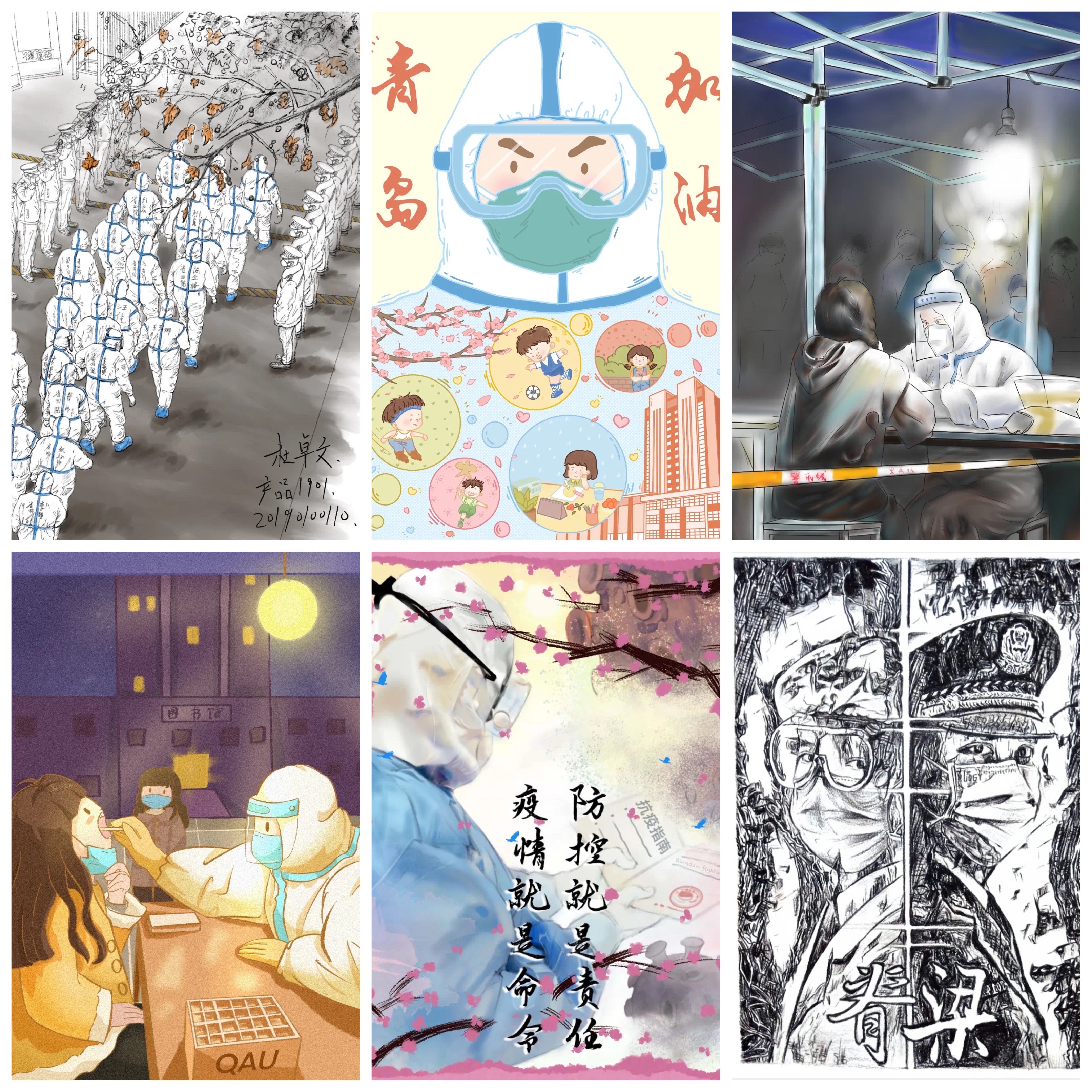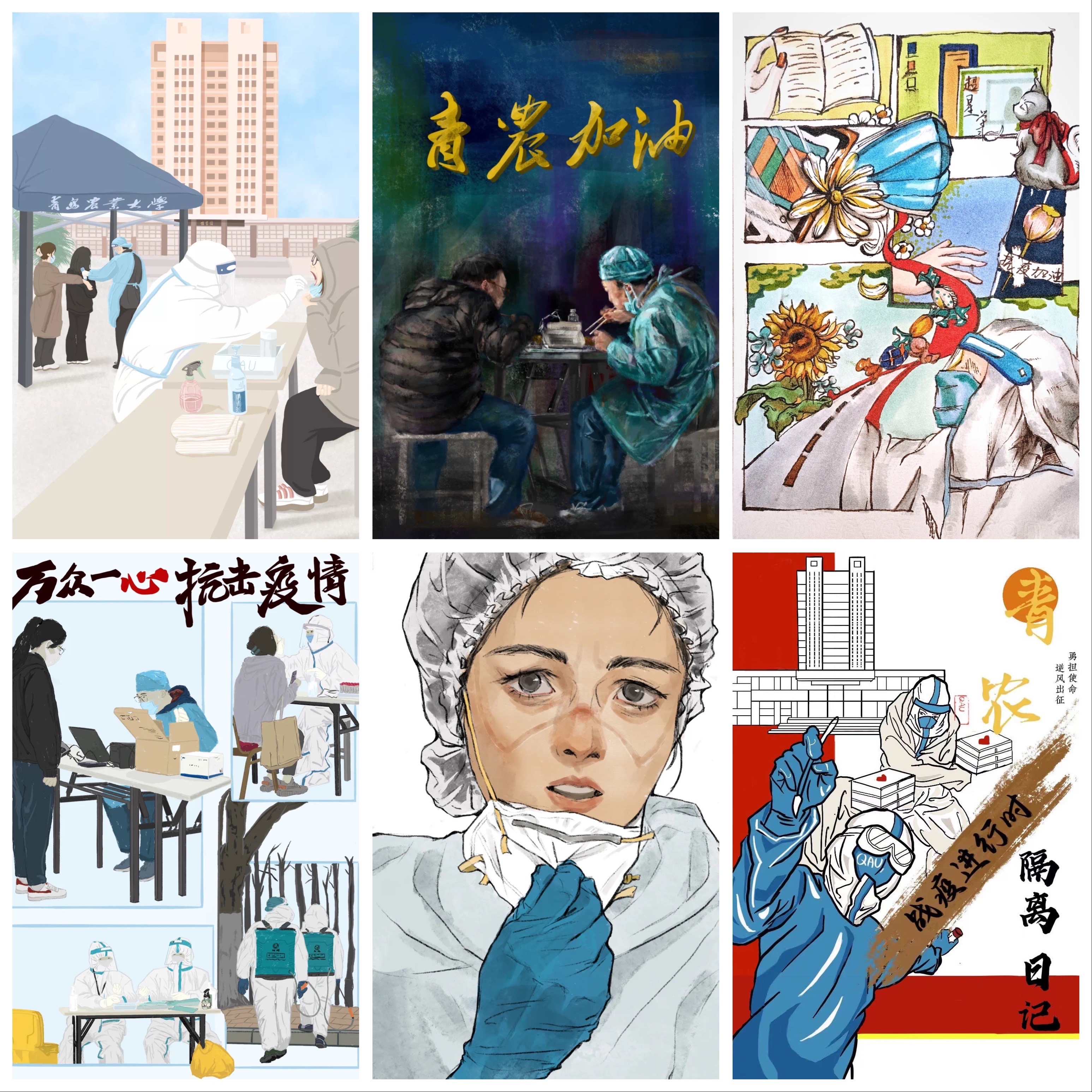 近日,青岛农业大学艺术学院第三(学生)党支部在校学生党员,发挥专业优势,以“共克时艰”为主题,创作系列抗疫主题作品,引起广泛关注,受到了学校和社会各界的好评。