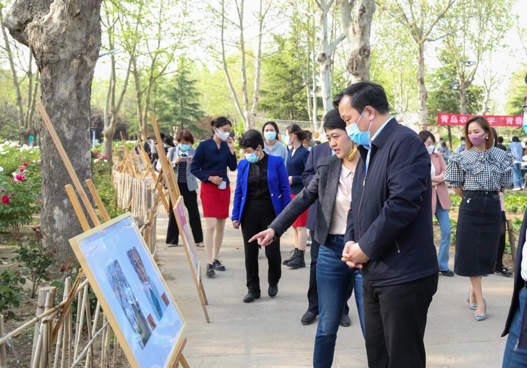 4月21日,正值校园牡丹盛开之际,由校团委举办的“青春礼赞,美韵芳华”美育周、第十届虹韵牡丹游园会系列活动在鼎盛花园举办,艺术学院“感恩的心,感谢有你——‘青岛农大最美抗疫瞬间’”美术作品展,作为活动子项目同时开展。校党委书记郭善利、党委副书记单连岱、纪委书记刘明瑛、副校长刘春霞等校领导现场参观了展览,鼓励师生继续发挥专业优势,积极开展创作,弘扬伟大抗疫精神,凝聚校园抗疫力量。