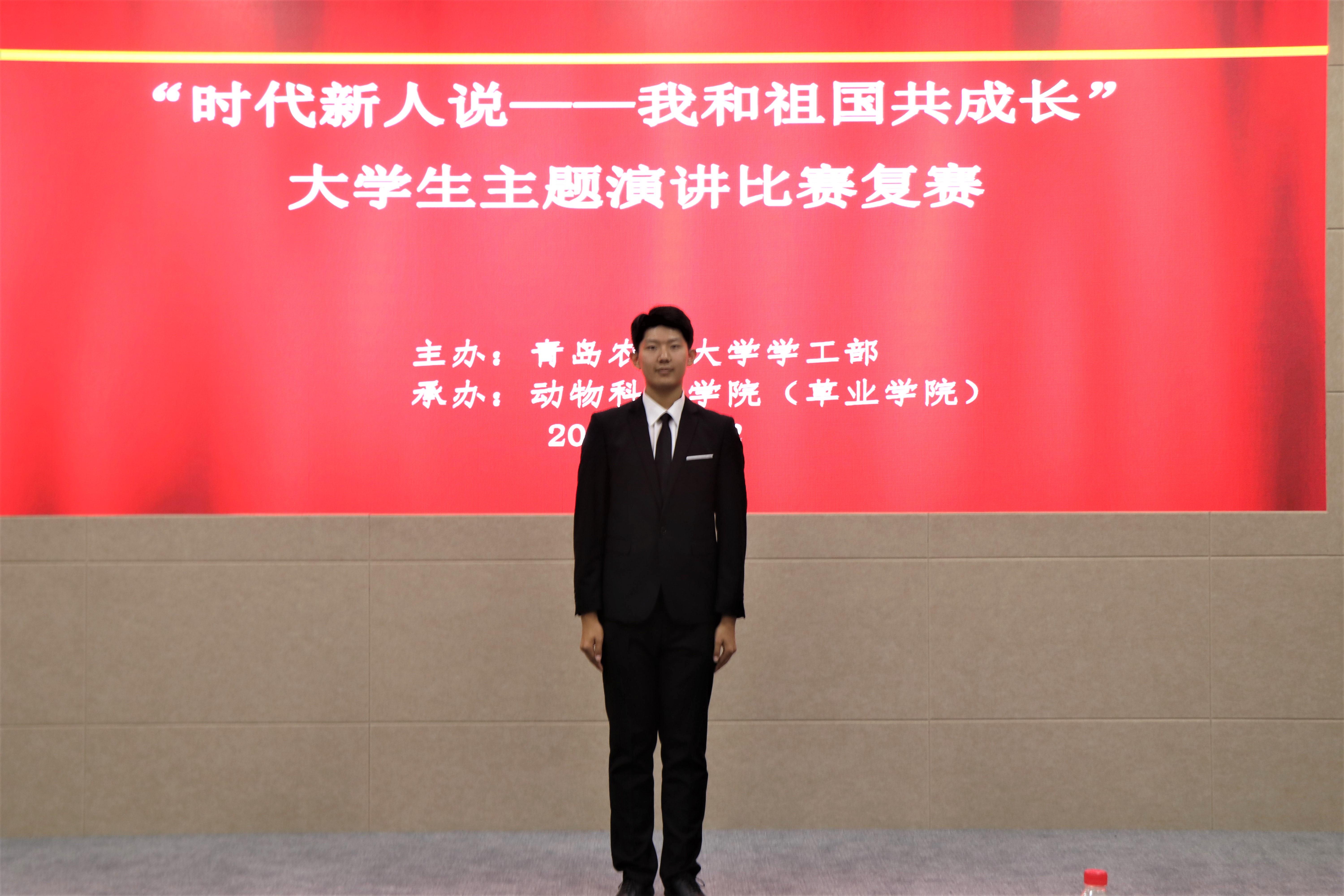 10月12日,由青岛农业大学学工部主办的,动物科技学院(草业学院)承办的“时代新人说——我和祖国共成长”大学生主题演讲比赛复赛在文经楼A102举行。机电工程学院张琳老师,国际教育学院刘璐老师,动物医学院闫周慧老师,动物科技学院(草业学院)范楚琦老师担任本次比赛的评委。通过学院初选,共有20位选手参与到本次比赛中,我院我院产品设计(3+4)1901班刘恩泉同学脱颖而出,成功晋级决赛。