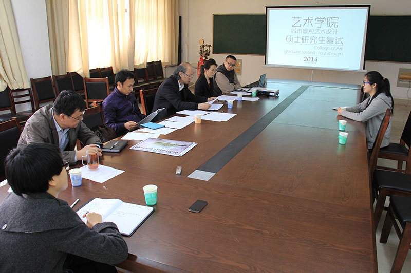 2014年艺术学院城市景观艺术设计方向硕士研究生复试工作于4月3日在会议室举行。院长宋磊、相关学科负责人等出席会议。