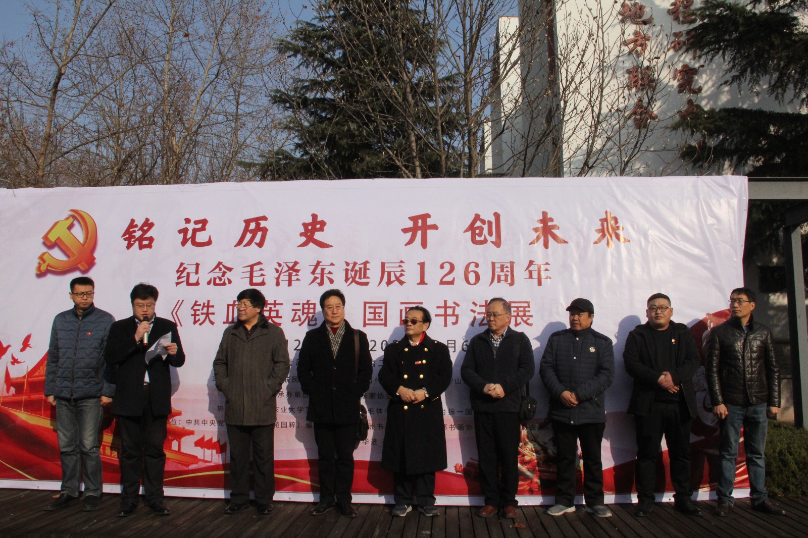 为纪念毛泽东同志诞辰126周年,12月26日,青岛农业大学艺术学院于文经楼前举办“铭记历史、开创未来”纪念毛泽东同志诞辰126周年《铁血英魂》国画展。中国毛体书法协会渤海分会主席、河北省毛体书法研究会常务理事孙秀彬,河北省毛体书法研究会主席韩振英,河北省毛体书法研究会常务理事、河北毛体书协执行副主席刘常青,河北毛体书法研究会常务理事、河北毛体书协常务副主席沈国义,河北毛体书法研究会常务理事、河北毛体书法协会副主席钱有才,中国书画院副院长、燕赵书画研究院副院长王和,青岛农业大学艺术学院党总支副书记、副院长乔磊,院长助理赵紫平,团委书记李振玻出席本次开幕式。