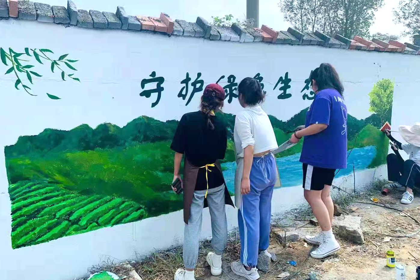 国庆节前夕,青岛农业大学艺术学院与临沂市莒南县朱芦镇合作项目——大型乡村振兴主题墙绘全部完成。这是学院党史学习教育“我为群众办实事”的重要内容之一,也是学院紧密结合乡村振兴战略需求强化服务地方能力的重要举措。9月26日,党总支副书记、副院长周维维代表学院前往朱芦镇,与镇党委书记耿国华、镇长左清洋一起,看望了在当地进行创作的师生,现场查看项目完成情况,并就进一步深化合作进行交流。