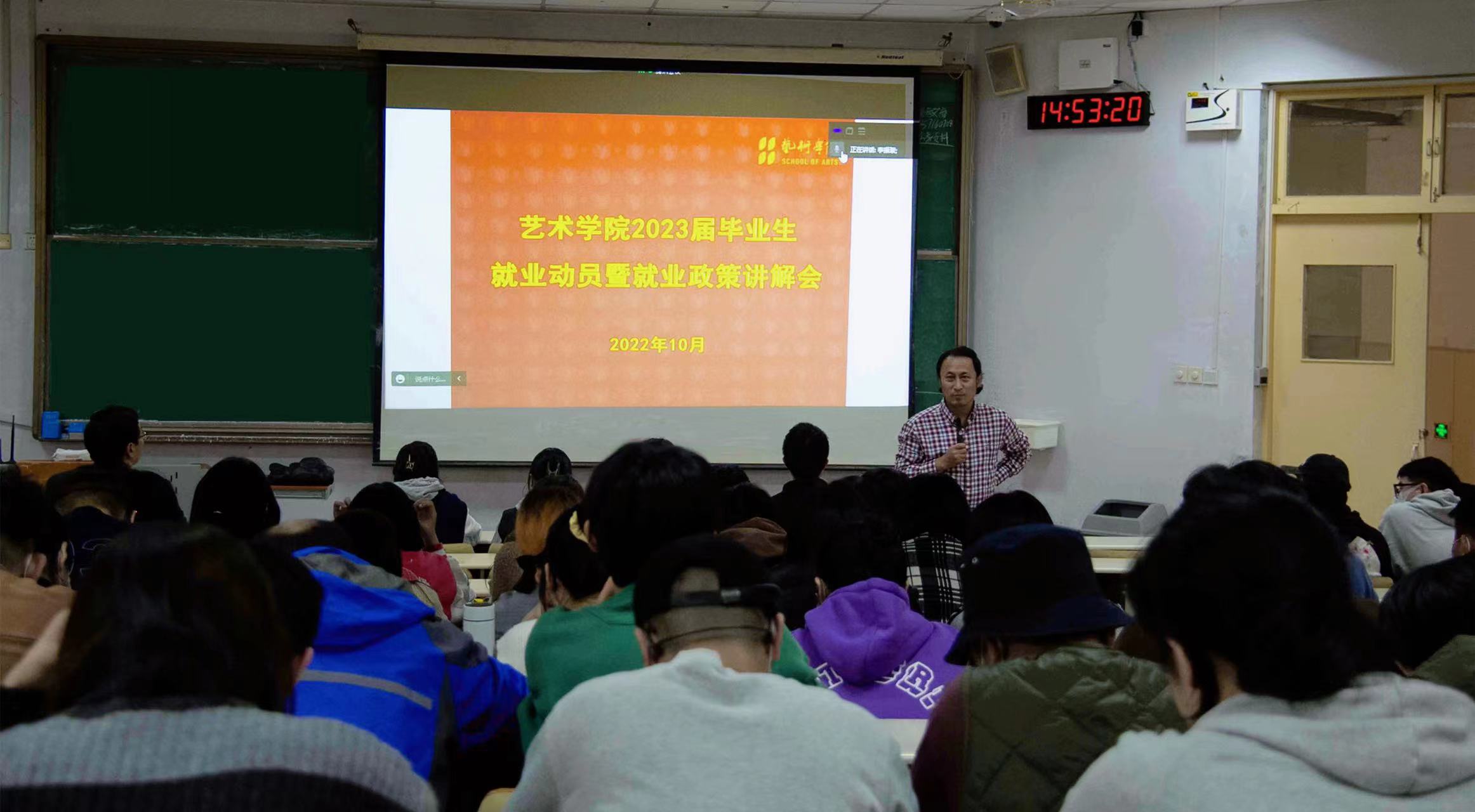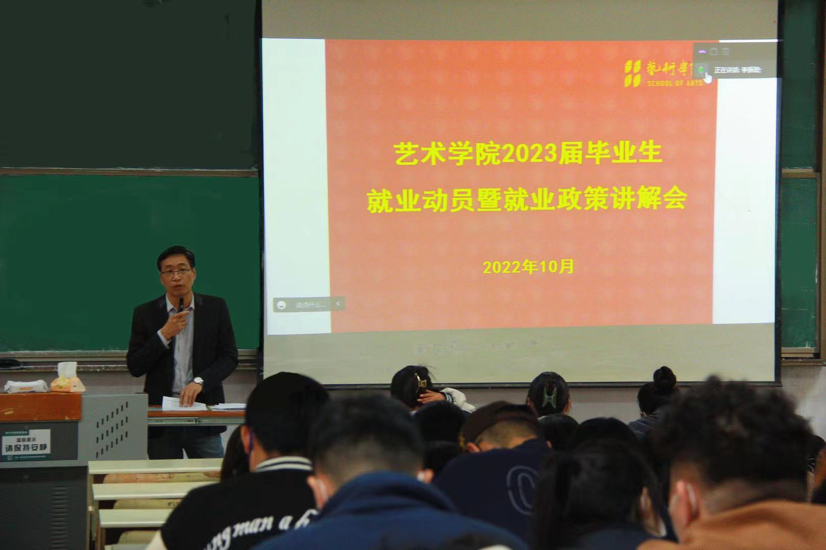 为帮助2023届毕业生树立正确的就业观,全面了解疫情之下的就业形势,准确掌握就业政策,10月26日-27日,艺术学院以线上线下相结合方式对全院教师进行了就业培训,面向全体2023届毕业生开展就业动员暨就业政策讲解会。