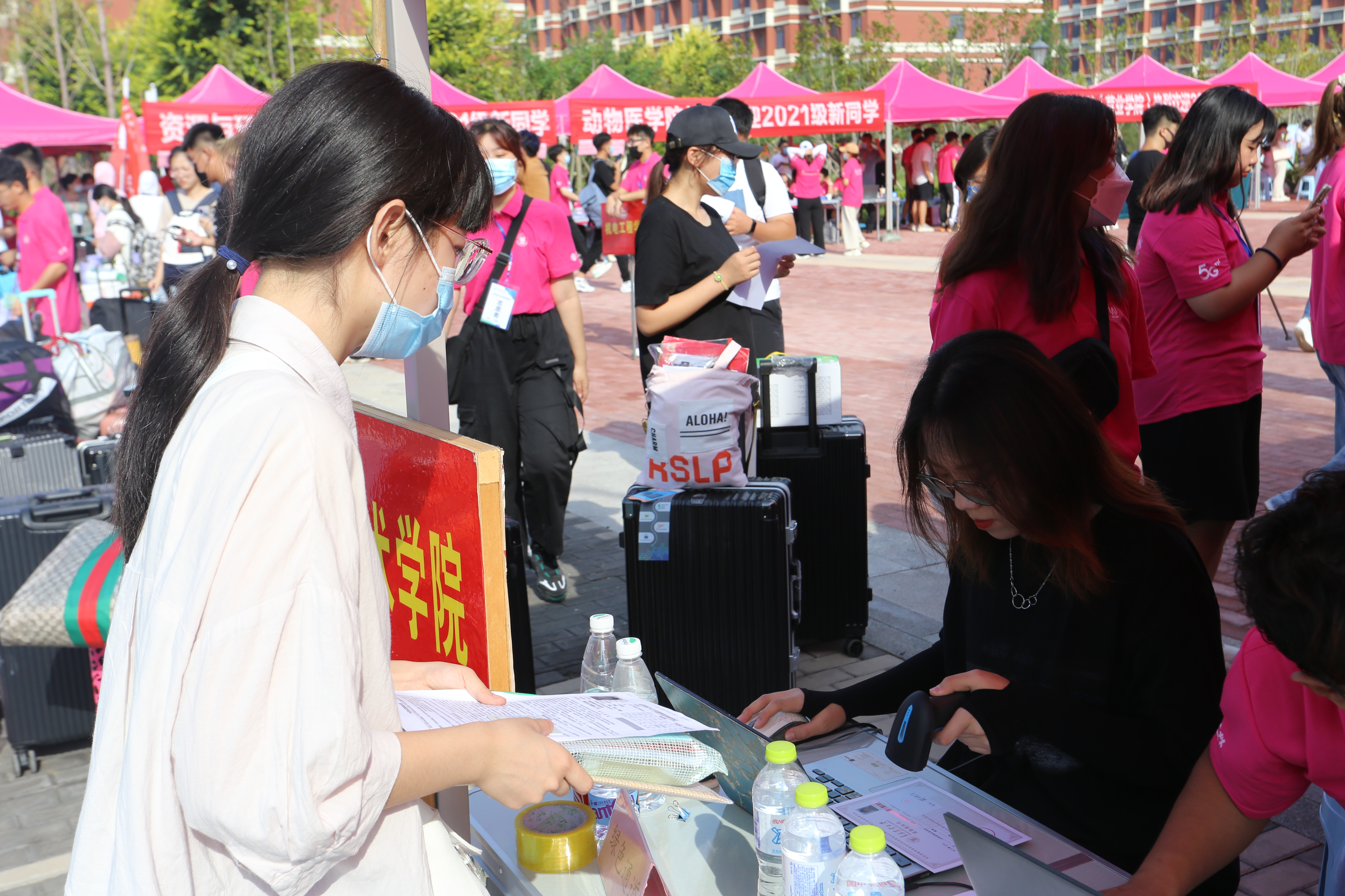 (2021级新生有序完成报到手续) (院长李慧斌查看新生报到情况)