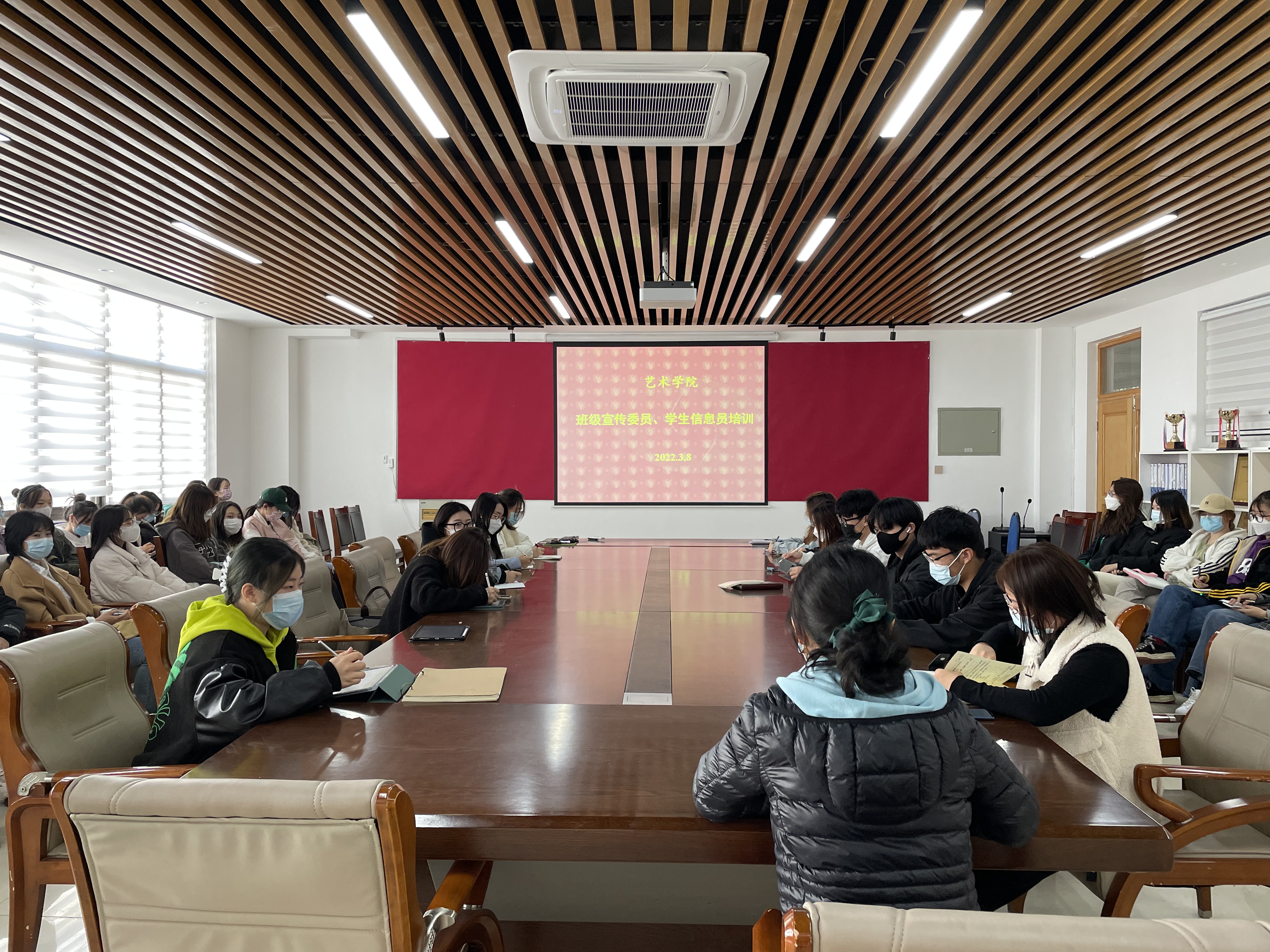 3月8日,艺术学院召开各班级宣传委员、学生信息员新学期培训工作会议,由学院党总支副书记、副院长周维维主讲,辅导员于晓霞主持培训。