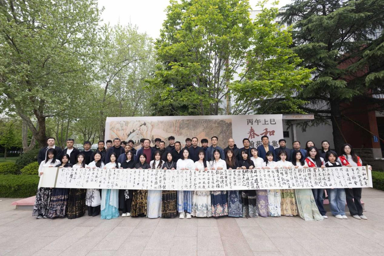 全体书法家还与艺术学院师生共同挥毫,合力完成《兰亭集序》长卷。同学们表示,在与书法家们的深入互动中,进一步深化了对书法艺术的理解,有力提升专业素养和学习热情。