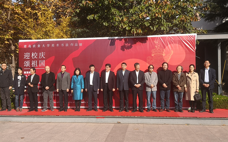 11月2日上午,由青岛农业大学工会主办、艺术学院承办,学院教职工书画协会、摄影协会协办的“迎国庆、颂祖国”青岛农业大学美术书法作品暨2019级综合写生实习作品展在文化广场开幕。校党委书记李宝笃,党委副书记单连岱,党委委员、宣传部部长、统战部部长、教师工作部部长慕乾伟出席开幕式,学校新聘任的书画名家李樯、田洪、陈灵均、高岩、于永江、李鑫等共同出席开幕式。