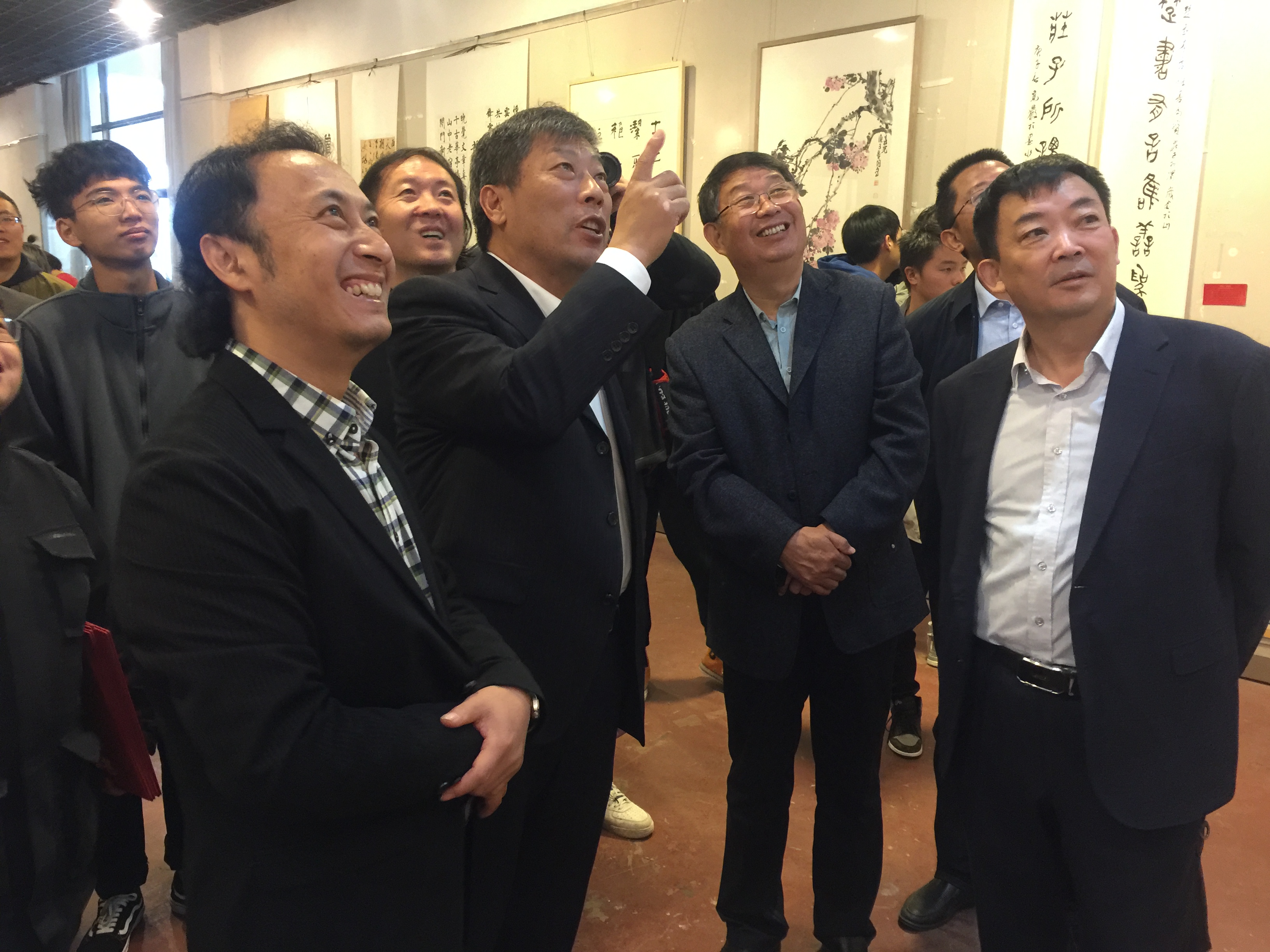 慕乾伟代表学校对各位驻青艺术家的到来表示热烈的欢迎。慕乾伟指出,坚定中国特色社会主义文化自信,必须深入了解中华优秀传统文化,以中华优秀传统文化涵养人。此次书画展集中展示了我校师生在国庆期间精心创作的一批优秀作品,不仅表达了广大师生对伟大祖国的美好祝愿,对明年我校迎来建校七十周年校庆的美好祝愿,更展示了中华优秀传统文化的独特魅力。希望广大师生积极向艺术家学习,进一步坚定文化自信,希望艺术家们多来学校交流,开展合作,助力学校提升人才培养质量、浓厚校园文化氛围。