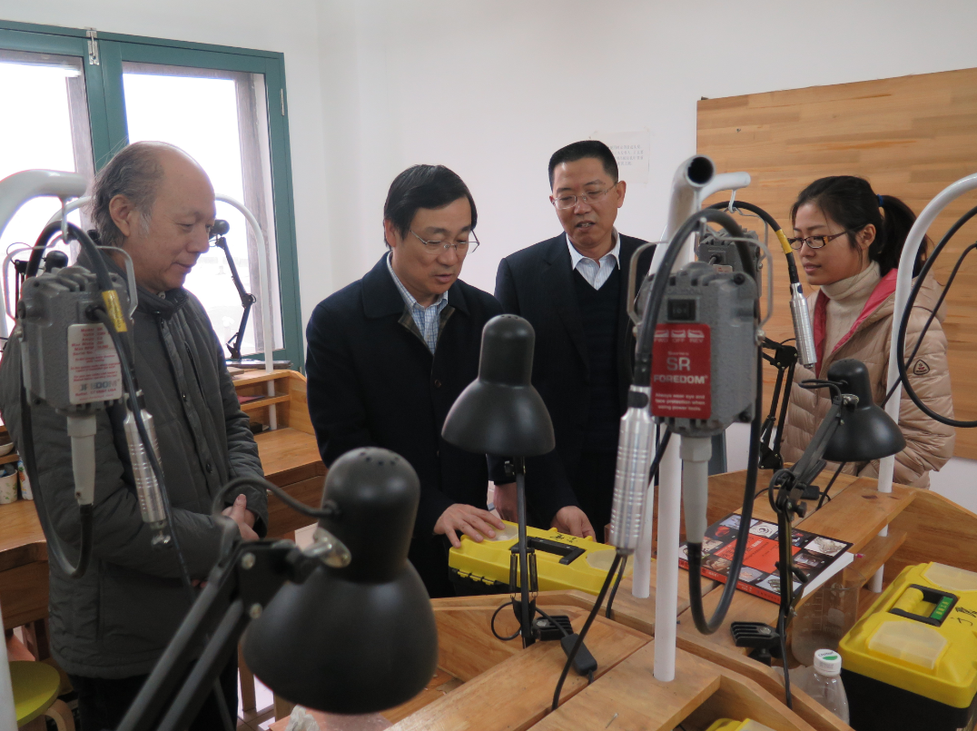 随后,宋校长参观了我院几个实验室,丝网版画实验室、首饰与珠宝设计实验室,材料实验室等,并对实验室的使用提出了合理化建议。