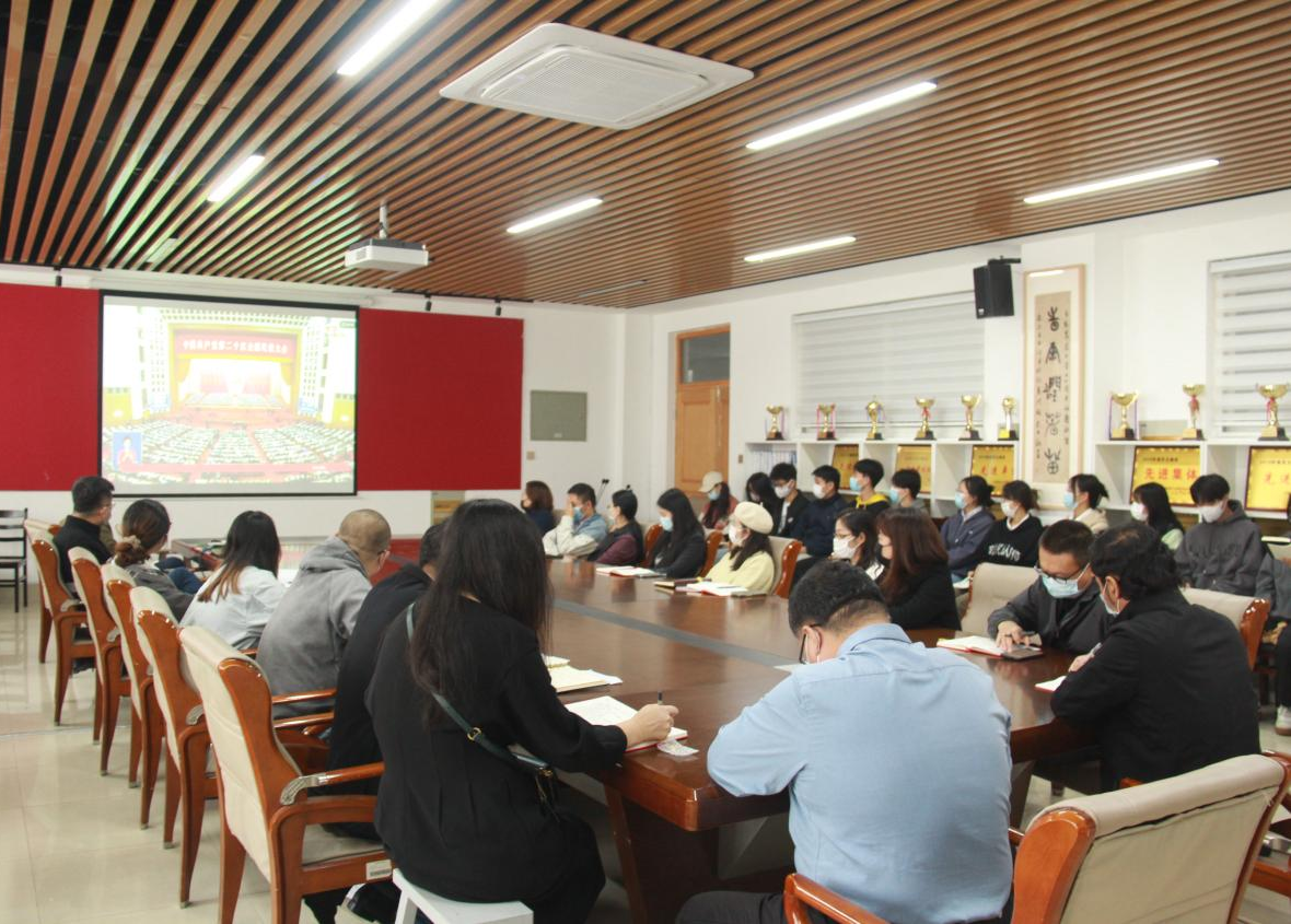 中国共产党第二十次全国代表大会于10月16日上午隆重开幕,艺术学院以线上线下、集体个人相结合方式组织全体师生收看大会直播,党员教师和学生代表在学院会议室集中收看,教育部第三批全国党建工作样板支部—学院第三(学生)党支部在党员活动室集中收看,其他师生采用就近就便的方式收看。
