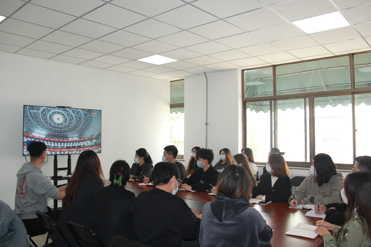(教师党员和学生代表在学院会议室观看大会直播)