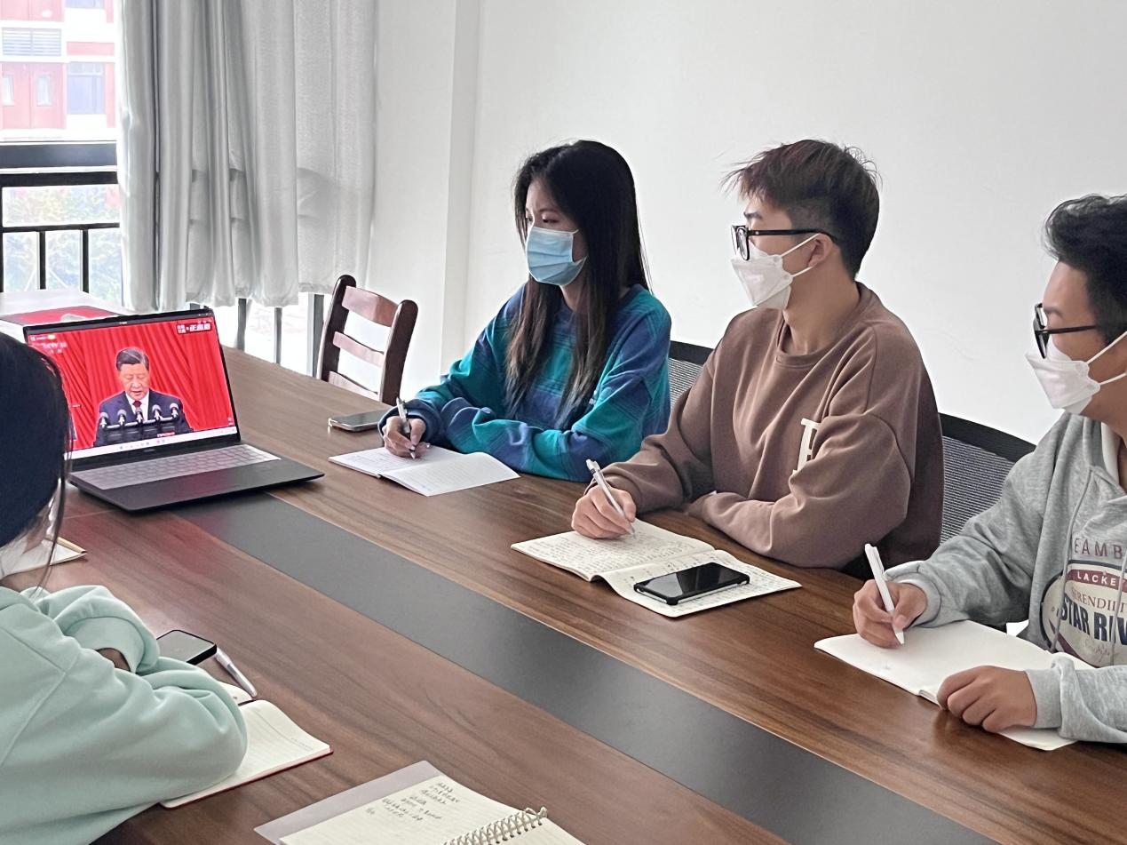 (2022级学生代表在平度校区办公室收看大会直播)