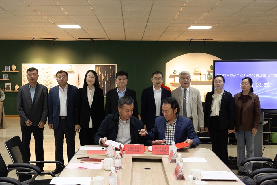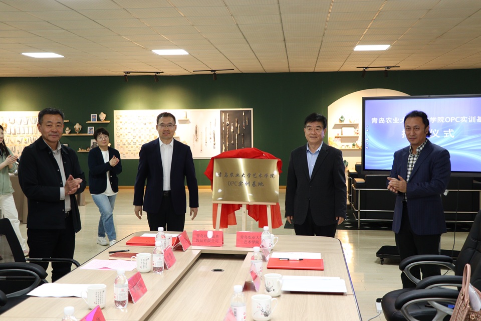 4月2日,青岛农业大学艺术学院OPC实训基地揭牌仪式在青岛玖慕晶典饰品有限公司举行,校党委副书记田义轲与城阳区政府副区长王大伟共同为基地揭牌,艺术学院院长李慧斌与青岛玖慕晶典饰品有限公司(中韩时尚饰品产业AI+OPC实训基地)董事长胡建训签署实训基地校企合作协议。城阳区中日韩协同发展促进中心主任崔春花、城阳区信息化服务中心主任刘慧、青岛农业大学创新创业学院院长吕国莹以及流亭街道办事处、中国韩人会山东联合会、青岛斯诺工艺品设计有限公司有关负责人出席揭牌仪式。