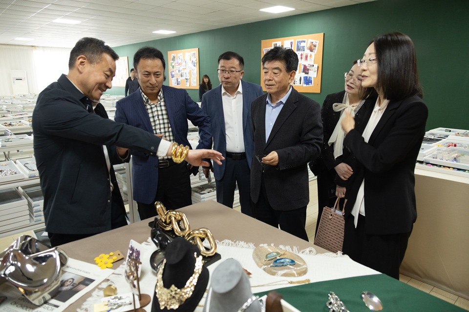 揭牌仪式前,田义轲一行实地调研了中韩时尚饰品产业AI+OPC实训基地,详细了解基地的产业载体、功能布局与发展规划。该基地以AI技术赋能饰品产业创新研发,整合青岛市时尚饰品协会、青岛中日韩知识产权国际交易中心等多方优质资源,依托青岛玖慕晶典饰品有限公司10000余平米全链条产业载体,构建集设计研发、生产制造、销售运营、直播电商、品牌推广于一体的产业支撑体系,搭建专业化OPC原创设计孵化平台。基地面向中韩高校开展深度产学研实训,为课程实训、毕业设计、创新创业实践提供优质场景与实践载体;同步提供OPC创业孵化全周期服务,涵盖办公空间、项目指导、工商财税、知识产权布局、政策对接等一站式赋能,助力创业者实现“单人成军、轻资产、高产出”的发展目标。