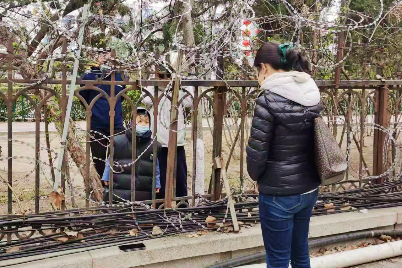 (学院党总支副书记、副院长周维维在封闭式管理期间和孩子“隔网相见”)